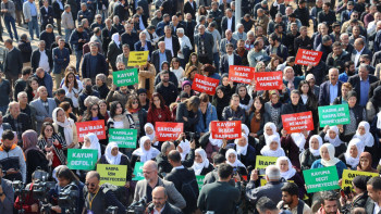 Kayyım atamalarının ardından Batman Belediyesi önüne...