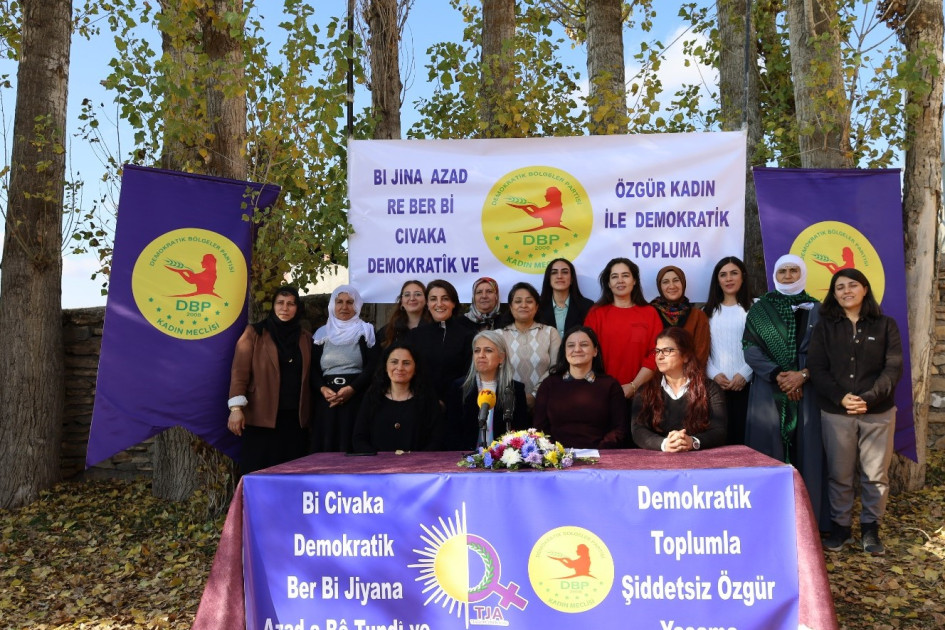 25 Kasım'ın kadınlar açısından önemli bir tarih olduğunu ifade eden Çiğdem Kılıçgün Uçar, "Bu tarih bizim açımızdan da kadın duraklarından bir tanesi. Erzirom’da bir kadının yaşadığını İstanbul'da da bir kadın yaşıyor. Orada yaşanan Avrupa'da ve Afrika'da da yaşanıyor. Biz kadınların yaşadıkları sorunları evrensel görüyoruz ve buna karşı ortak mücadele yürütülmesi gerektiğini savunuyoruz. Bu ülkede kadınlar hem fiziksel hem psikolojik şiddetle karşı karşıya. Hatta kadınlar burada yaşam hakları için mücadele ediyor. Türkiye'de yaşayan 3 kadından biri şiddet görüyor. Katil için de çok uzağa bakmaya gerek yok. Katiller yanı başımızda yer alıyor. Biz toplumsal cinsiyet eşitsizliği için mücadele verirken AKP iktidarı bu 10 yılı aile yılı ilan etti. Yani kadını aile içerisinde görülmeyen bir yere hapsetti. Kadınların özgürlüğü evet aileden başlamalı ama yasal mevzuatlarla güvence altına almak zorunda. Toplumum kılcal damarlarına kadar sızan bir zihniyet var. Kadının yaşamına dair sınırları kendilerinin belirleyeceğini söyledikleri bir sistem bu. Biz bu yıl kadın meclisimizle birlikte kadın kurtuluşunu her yerde anlatan atölyeler yapma kararı aldık. Onlarca kentte binlerce kadınla bir araya geldik. Bahsettiğimiz şey 1998 yılında Abdullah Öcalan’ın kadın özgürlüğüne dair perspektifini esas aldık” dedi.