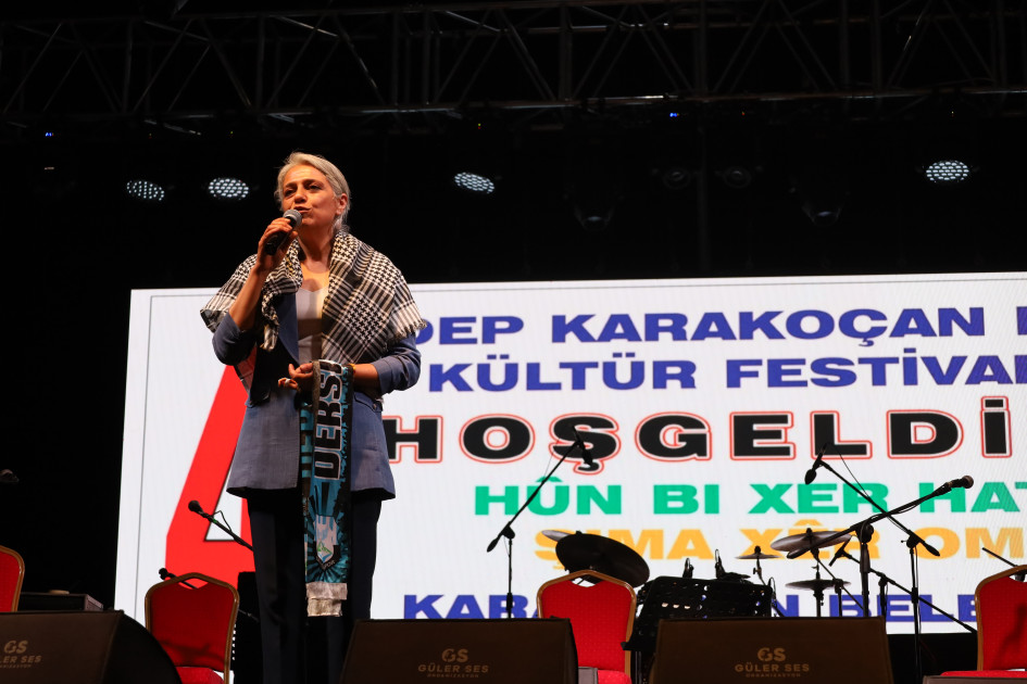 “Her bir araya gelişimiz inkarın ve asimilasyonun karşısında birlik olduğumuzun göstergesidir. Çok önemli bir zaman dilimindeyiz. Bu ülkenin yüz yıllık tarihinde, hukukunda, yasasında hiçbir şekilde tanınmayan Kürt halkı; yeniden bir başarıya imza atmakla karşı karşıya. Şubat ayından itibaren bu ülkede umutsuzluğun yerine umut, bu ülkede savaşın yerini onurlu bir barış, bu ülkede hukukun ve adaletsizliğin yerine gerçek bir adaletin olabileceğine inandıran bir çağrıyla karşılaştık. Kürt halk önderi Sayın Öcalan'ın 27 Şubat'ta yapmış olduğu çağrı umuda, özgürlüğe, birlikte ortak yaşamadır. Yapmış olduğu çağrı en çok da bugün burayı dolduran gençleredir. Diyoruz ki Dep en çok sürgün yaşayan yer en çok göç veren yer. Niye? Bir insan kendi dilini kullandığı için kendi hakkını hukukunu aradığı için göç etmek zorundaysa bu ülkede, bu ülkede bir sorun var. Bakın, binlerce Karakoçanlı, binlerce Bingöllü, göç etmek zorunda kaldı. Gençlerimiz özel savaş politikalarıyla uyuşturucuya bulaştırılıyor. Kadınlar, genç kadınlar fuhuşla baş başa bırakılıyor. Kürdistan'da yürütülen bu politikaya karşı en çok kadın arkadaşlarımızı ve gençlerin uyanık olması, şiar olması, bunun karşısında durması gerekiyor.