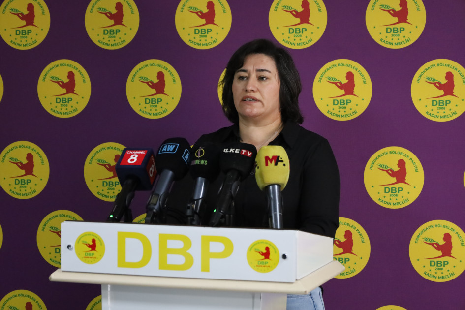 "Değerli basın emekçileri, sevgili kadınlar ve kıymetli halkımız, DBP Kadın Meclisi adına hepinizi sevgi ve saygıyla selamlıyoruz.